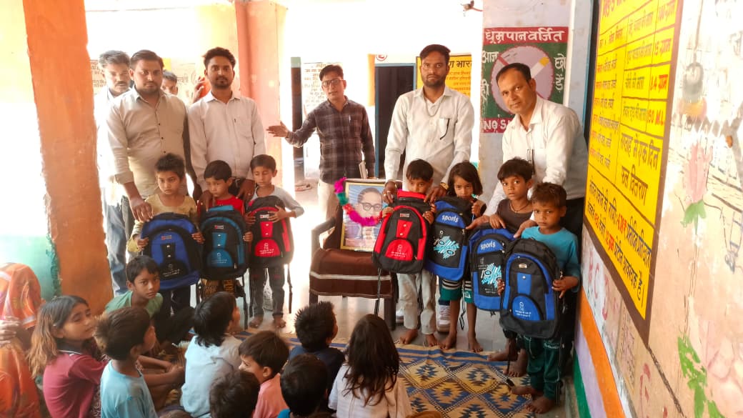 बैग पाकर विद्यार्थियों के चेहरे पर चमक देखने को मिली इस मौके पर डॉ रामावतार वर्मा ने विद्यार्थियों को बाबा साहब के जीवन संघर्ष तथा उनका देश हित और शिक्षा हित में किए गए महान कार्यों को संक्षेप में बताकर सभी को शिक्षा के प्रति सक्रिय रहने के लिए कहा गया अध्यापक नरेंद्र सिंह ने राज्य सरकार तथा केंद्र सरकार द्वारा शिक्षा विभाग की योजनाओं को बच्चों को तथा उनके अभिभावकों को बताकर रोजाना अपने बच्चों को विद्यालय में भेजने को कहा
